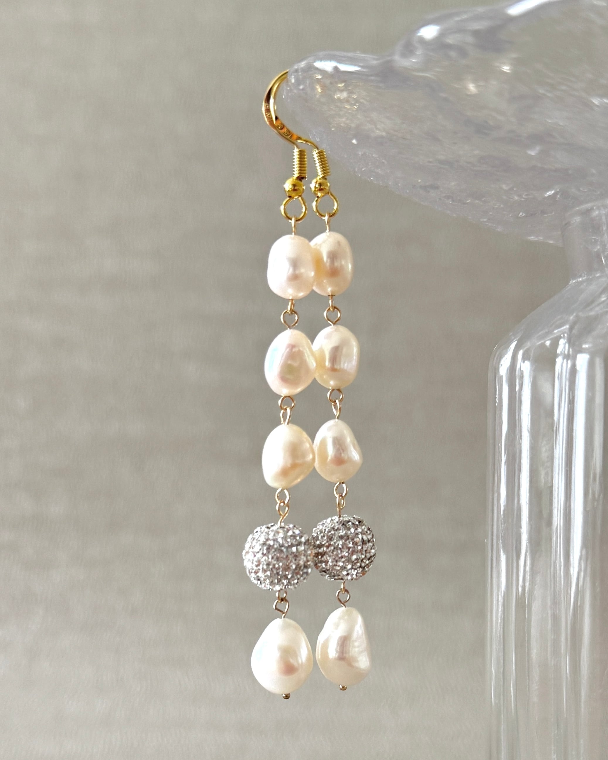 淡水パールとジュエルボール…最高のコンビが仲良くブランコするイヤリング/ピアスです✨✨ ジュエルボールは、 直径1mmほどの小さなクリスタルガラスを約100粒使用し、手作業でボール型に仕立てています。360°どこから見ても煌めく美しさです。 天然の美しさをもつ淡水パールと 整った輝きを放つクリスタルガラス 全く異なる素材の組み合わせですが パールの柔らかな艶と、 クリスタルガラスの煌めきが絶妙に調和し シンプルながらも存在感のあるデザインです✨✨ ニットやTシャツなど いつものコーディネートに キラリと一点使いで、こなれた印象に♡ また エレガントなワンピースや オケージョンスタイルなど 特別な日のコーディネートには お手持ちのアクセサリーと合わせるのも素敵です! 新生活が始まるこの季節 大切な方へのギフトとしてもお喜びいただけます♪ 百貨店のポップアップショップでもご好評いただいたネックレスが、 オンラインショップに初登場です! --------------------------------------- 商品仕様詳細 【サイズ】 淡水パール 約8mm ジュエルボール 約8mm チェーン長さ約2.5cm 【主な素材】 ⚪︎淡水パール ⚪︎スワロフスキー®︎クリスタルガラス ⚪︎チェーン 14KGF ⚪︎ピアス サージカルステンレス ⚪︎イヤリング 真鍮、ゴールドメッキ 【14KGF(14金ゴールドフィルド)とは、真鍮の芯に14金を圧着した素材です。ゴールドの厚みは金メッキの約20倍の厚みがあり剥がれにくく、長く綺麗にお使いいただけます。】 【サージカルステンレス(SUS316L)とは、 医療用の工具としても使用される素材になります。耐久性が高く腐食が起きにくいため、アレルギーを引き起こしにくいとされています。】 -------------------------------------------- プレゼント用ラッピングとして、ボックスに入れ、おリボンをおかけすることができます。(無料) ご希望の場合は、備考欄にてお知らせください。 ※アレルギーがご心配な方は、ご注意ください。 ※モニター、ブラウザの環境により実物と若干色や質感などが異なる場合があります。予めご了承ください。 ※淡水パールやクリスタルガラスは繊細な素材です。 落下などの衝撃にご注意のうえ、優しくお取り扱いいただきますよう、お願いいたします。